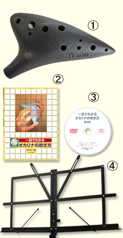 オカリナの入門セットです。プラスチックの本体をラバー加工して仕上げました。すべてC調で解説している教則本とわかりやすいDVDが付いていますので、初心者の方でも短期間でマスターできます。オカリナは素朴な楽器で、どなたでも比較的簡単に演奏ができ、その郷愁を誘う美しい音色で世界中で愛され続けています。